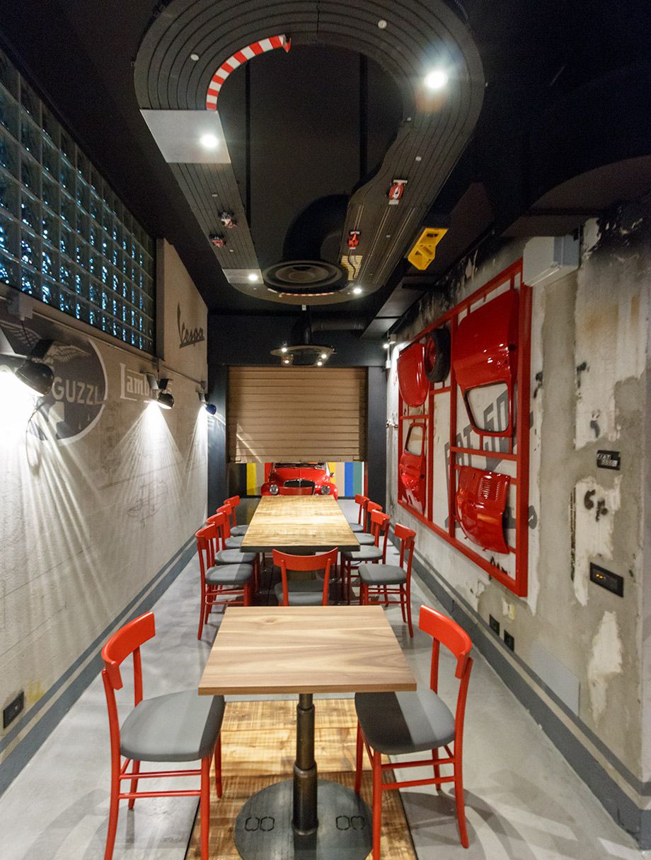 Una location unica nel suo genere, format originale in un ambientazione motoristica, potrete cenare ammirando dei modelli di auto sportive e d’epoca, in un atmosfera contemporanea e con una cucina a vista. Ogni dettaglio e’ curato a partire dalla rigorosa selezione della materie prime, proponendo piatti rispettosi del territorio, influenzati dalle stagioni, esplorativi nelle tecniche e giovanili nello stile.